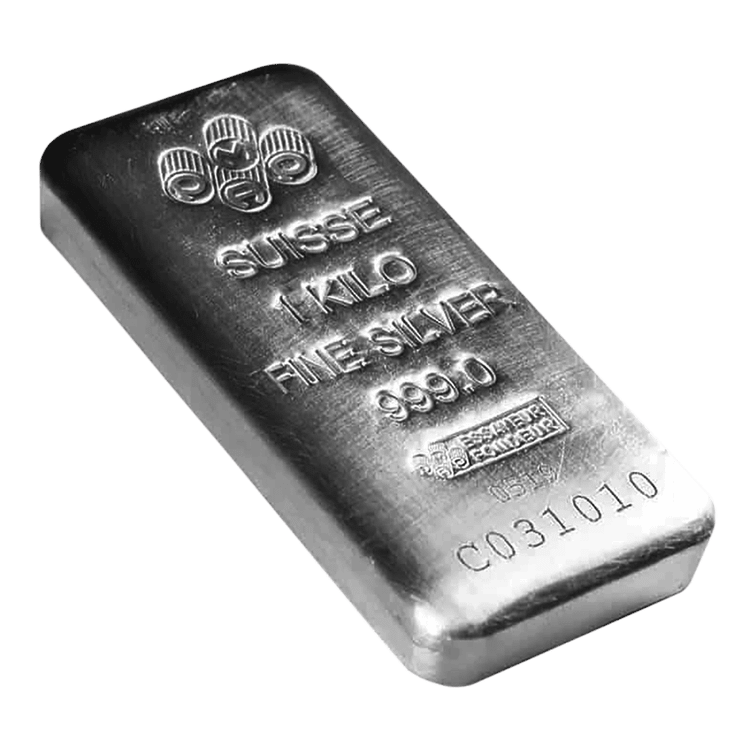 شمش نقره ۱ کیلوگرمی عیار 999.0 پمپ سوئیس (PAMP) ریختهگری