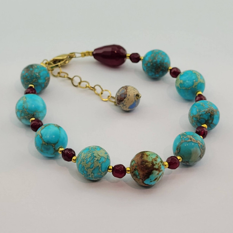 دستبند سنگ فیروزه آفریقایی و عقیق یاقوتی تراش اتصالات استیل ضدحساسیت و رنگ ثابت قابلیت تنظیم سایز مچ نمونه انحصاری ( هنر دست)