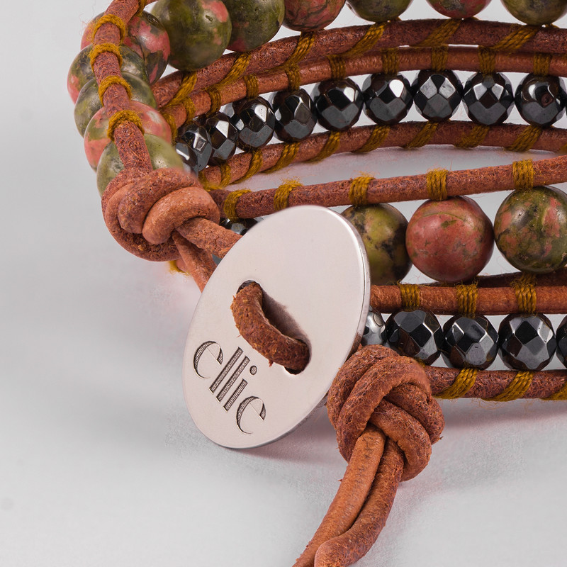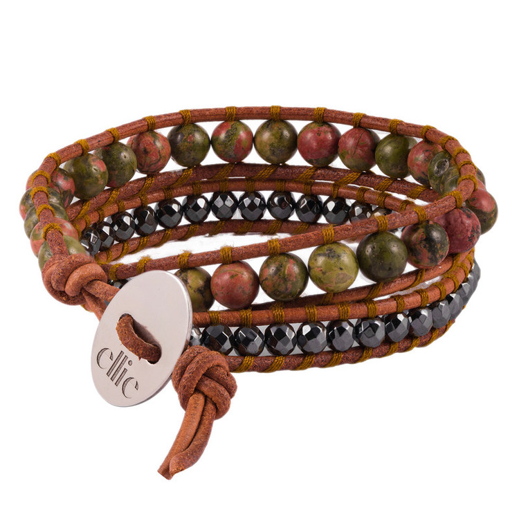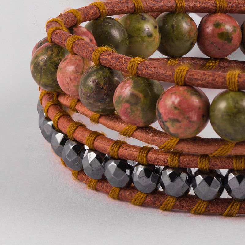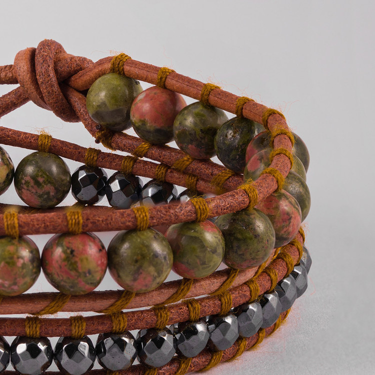 دستبند زنانه و مردانه اوناکیت و سنگ حدید با چرم طبیعی
