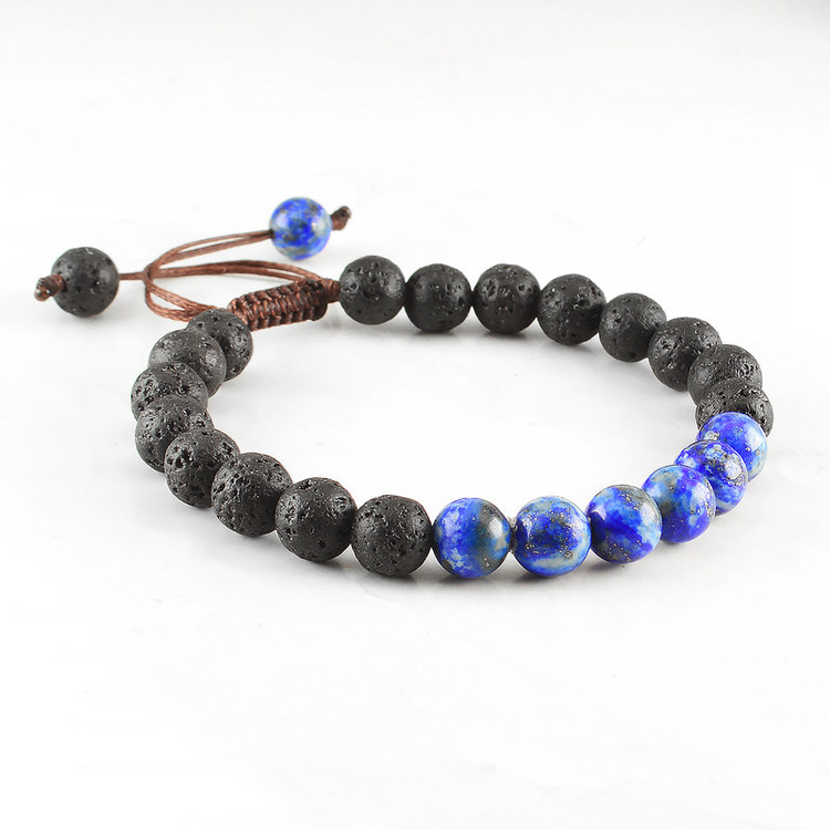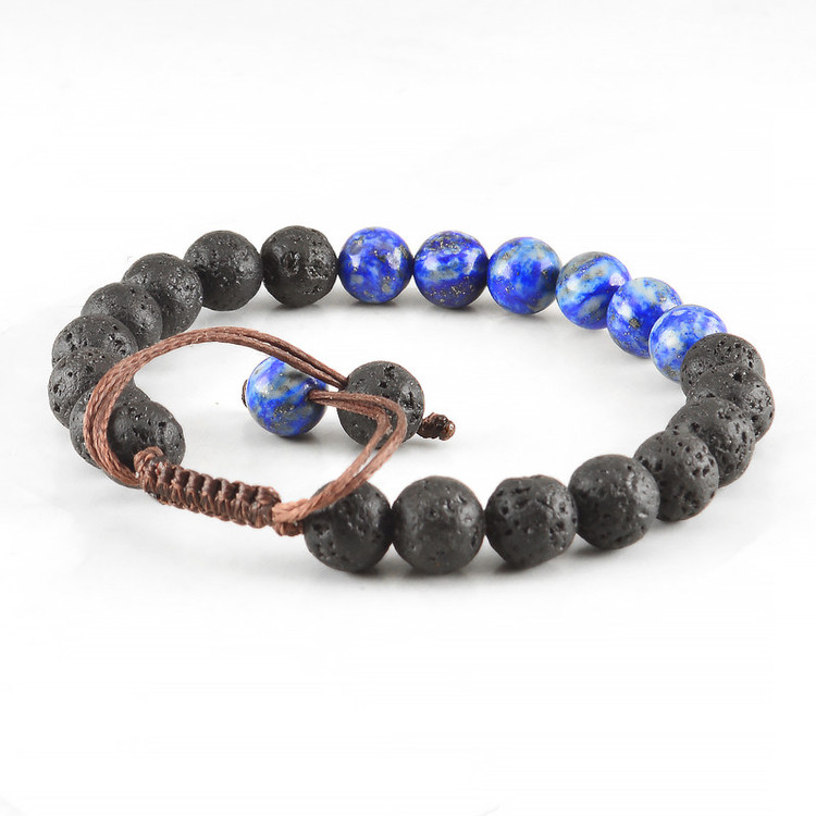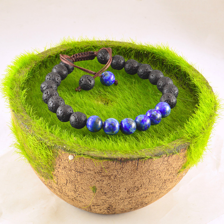 این دستبند شامل سنگ های طبیعی، لاجورد و لاوا است. سایز هر مهره سنگی 8 میلی متر و متناسب با سایز مچ دست 17 الی 18.5 سانت میباشد. لازم به ذکر است تمامی سنگ های دستبند اصل و طبیعی است. اگر سایز مچ شما بزرگتر از 18.5 سانت میباشد از بخش دستبند های مردانه، اقدام به ثبت سفارش بفرمایید.