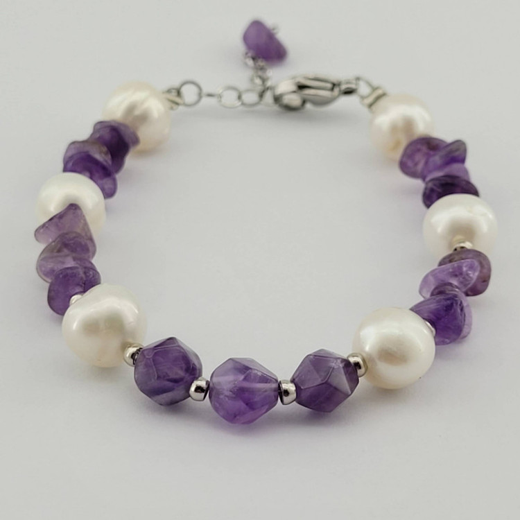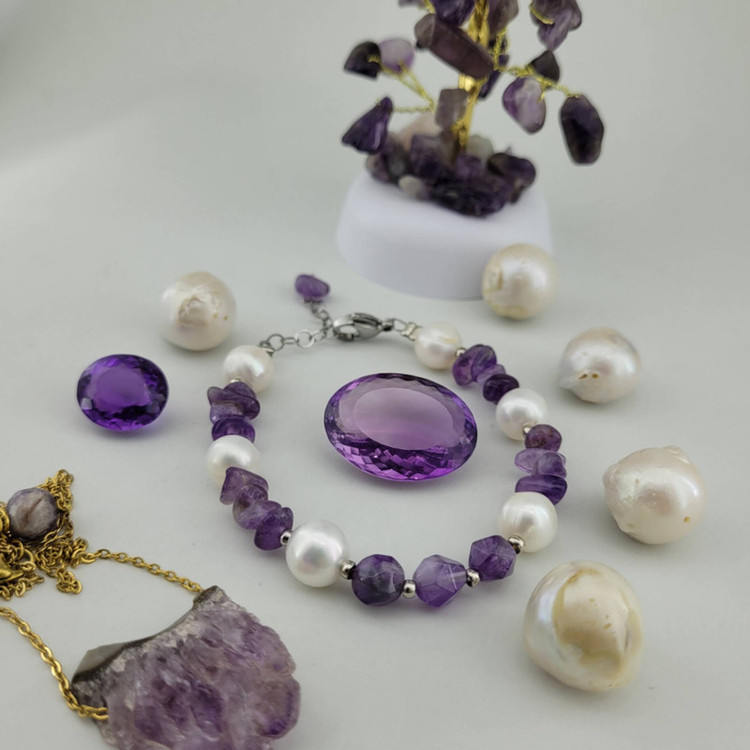 سایر توضیحات: دستبند ترکیب مروارید استرالیا و آمیتیست برزیل ( سنگها رنگ نشده )