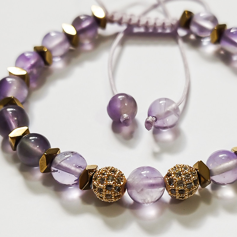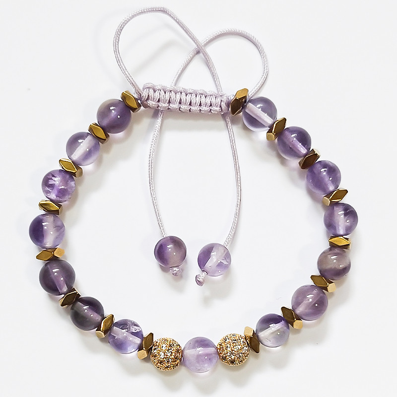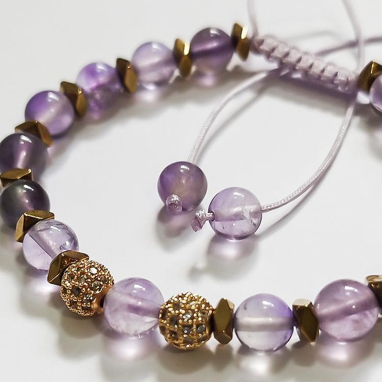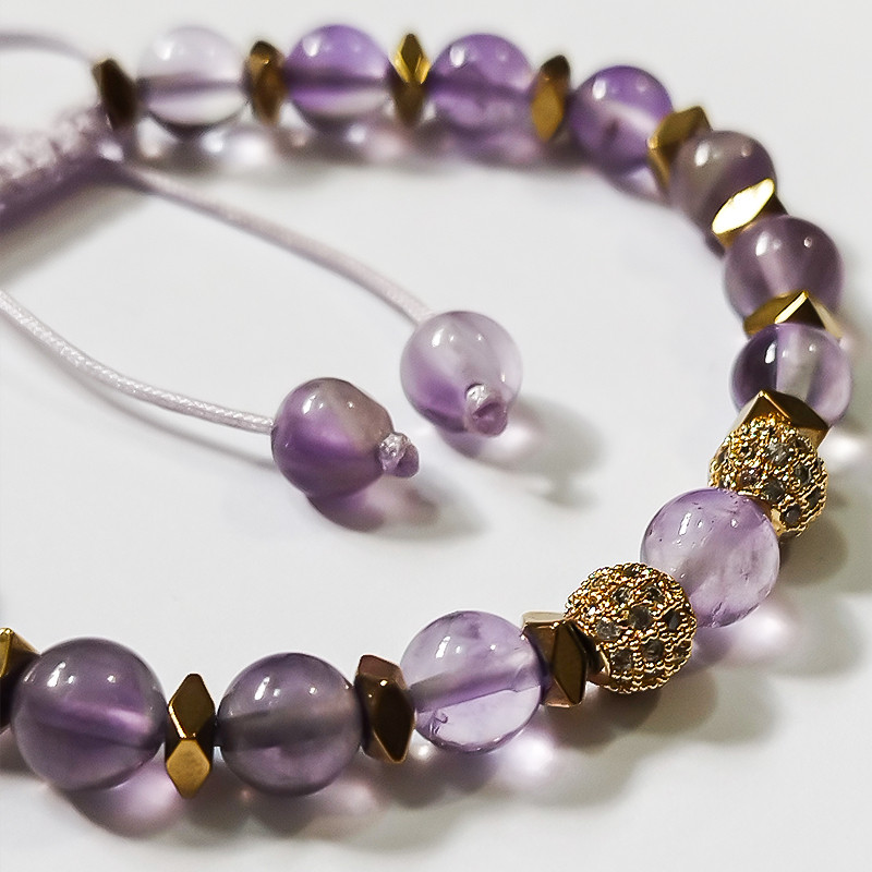 دستبند زنانه سنگ آمیتیست و حدید طبیعی ملکه
