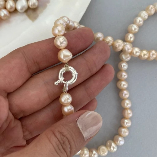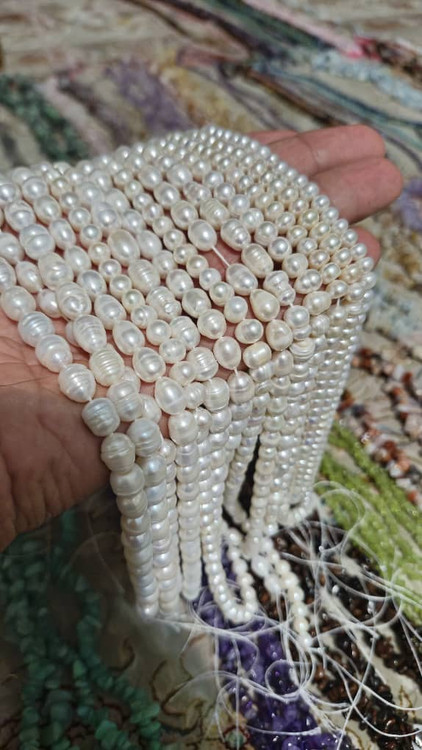 مروارید ریسه ای طبیعی ابشور ژاپن هنگ کنگ سایز ۷ میل ۶میل و ۸ میلیمتر