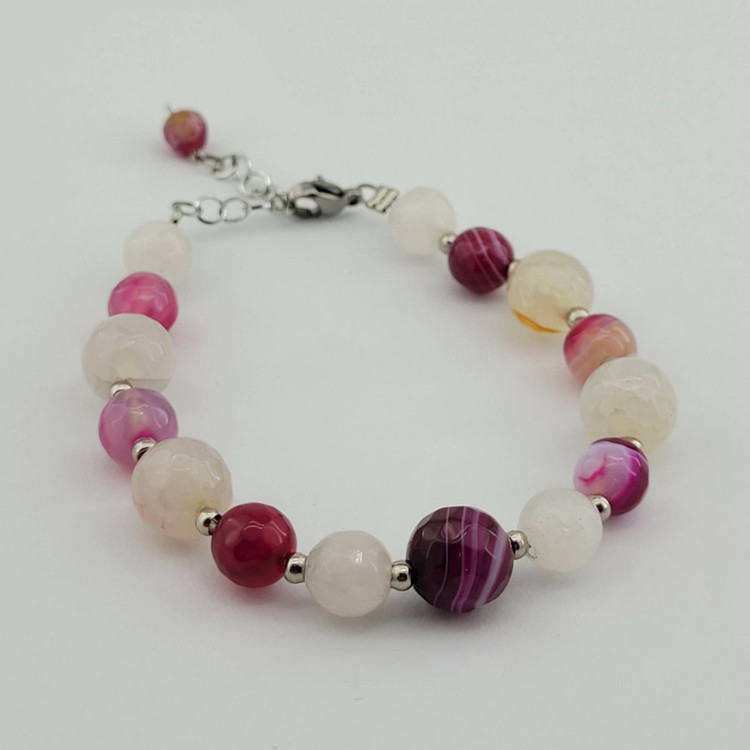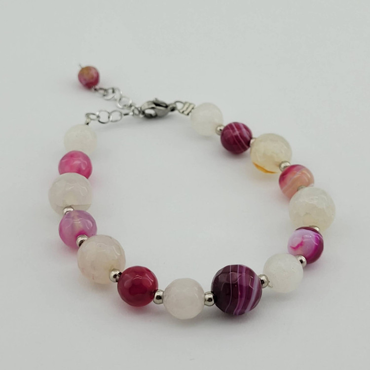 سایر توضیحات: دستبند سنگ کوارتز سفید و عقیق ماداگاسکار ( سنگ رنگ نشده)