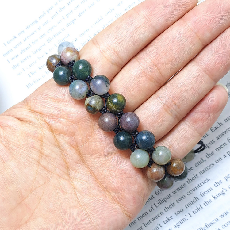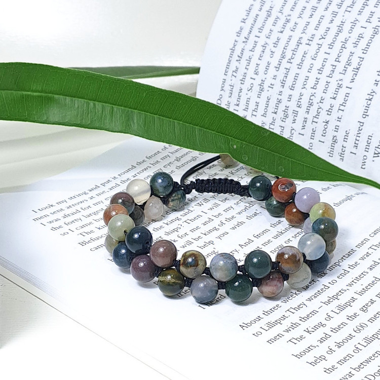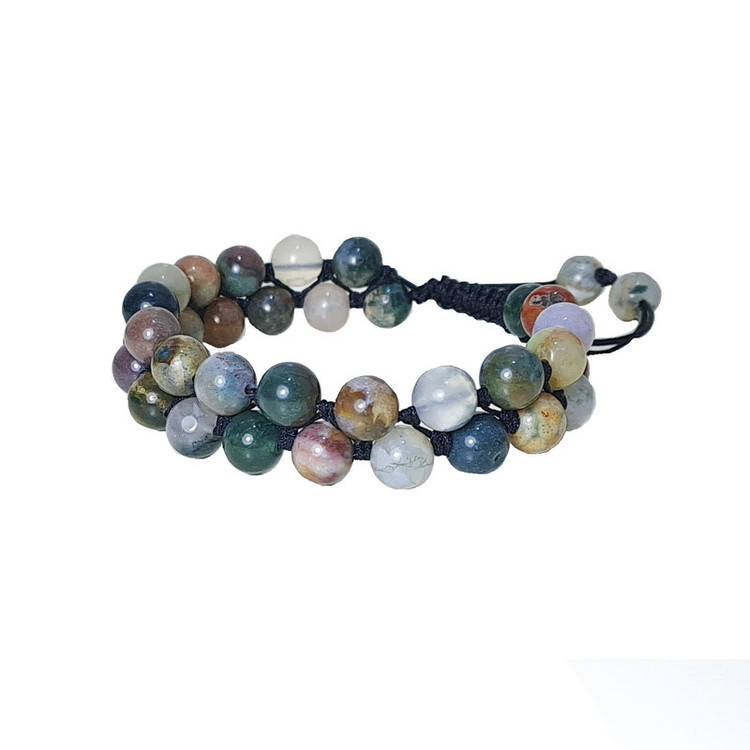 سنگ عقیق یکی از سنگ های پر انرژی و گرم است که به راحتی انرژی خود را از طریق تماس با پوست به بدن منتقل می کند. دستبند مردانه بافته شده در دو رج و از سنگ عقیق خزه ای سایز 8 می باشد. این دستبند مناسب مچ دست سایز 18 تا 22 سانتی متر است.