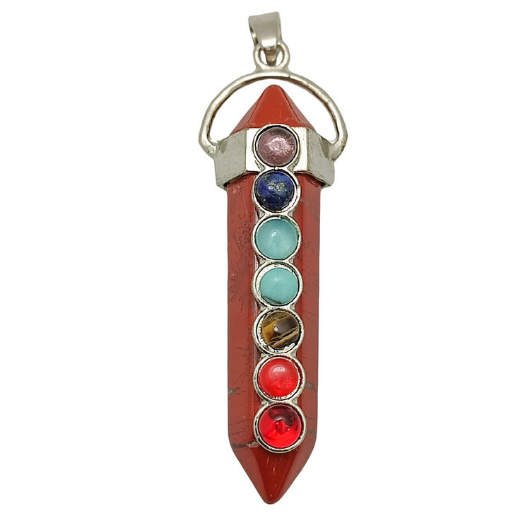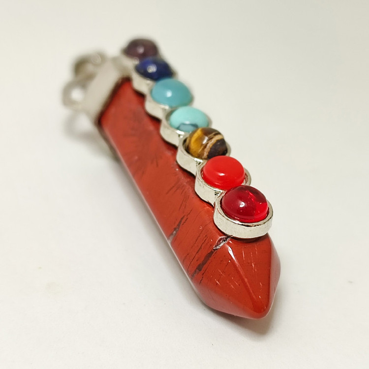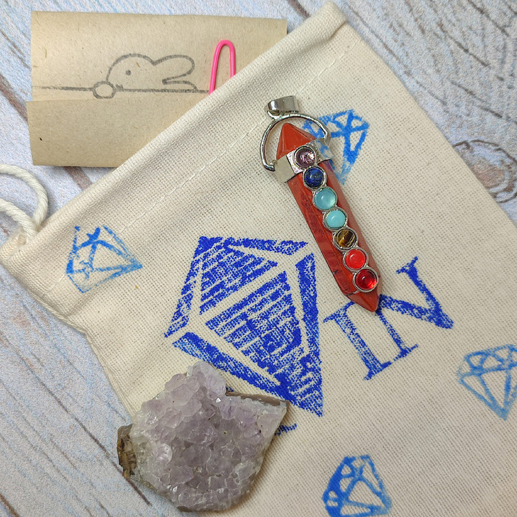 جنس پاندول از جاسپر سرخ همرا يك عدد بلور طبيعي آميتيست بسته بندي در كيسه الياف طبيعي
