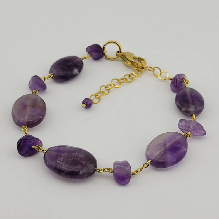 دستبند سنگ آمیتیست برزیل در تراش مختلف اتصالات استیل ضدحساسیت و رنگ ثابت قابلیت تنظیم سایز مچ نمونه انحصاری ( هنر دست )