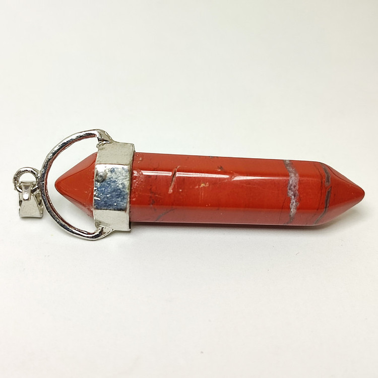 جنس پاندول از جاسپر سرخ همرا يك عدد بلور طبيعي آميتيست بسته بندي در كيسه الياف طبيعي