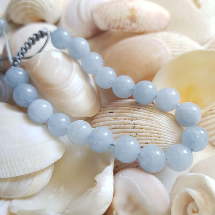 دستبند های سنگی طبیعی همیشه یکی از بهترین و جذابترین و مفیدترین اکسسوری و زیورآلات های قابل استفاده برای انسان هاست. در عین حال این دستبند ها به علت زیبایی و قیمت مناسب یکی از بهترین گزینه ها برای هدیه دادن می باشد. هر کدام این سنگ ها دارای خواص مخصوص به خود می باشند. لازم به ذکر است که کلیه دستبنده های تولید شده از جنس سنگ طبیعی اصل می باشد. این دستبند از جنس سنگ آکوامارین است