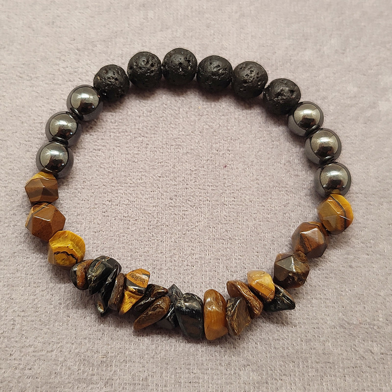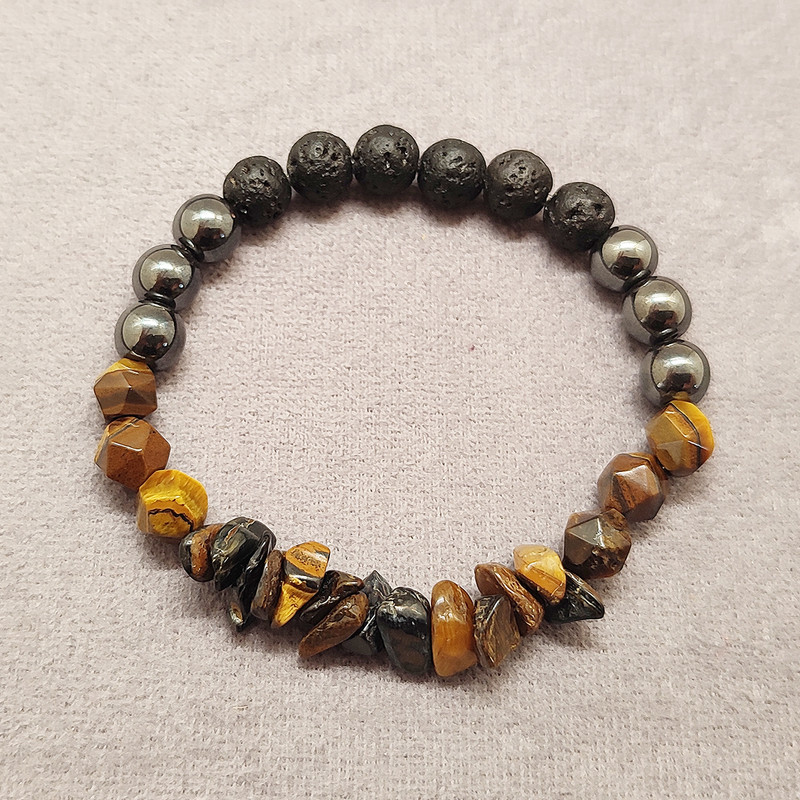 دستبند فوق میکس سنگهای چشم ببر تا منظم و چشم ببر تراش استار ولاواو گوی حدید می باشد.کار کشی و فوق العاده راحت است و در کنار ساعت جلوه ای زیبا دارد.