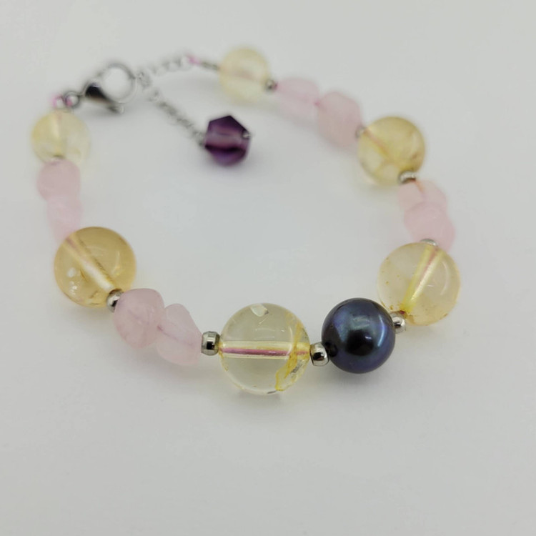 دستبند زنانه مدل مروارید و سیترین و رزکوارتز کد 70