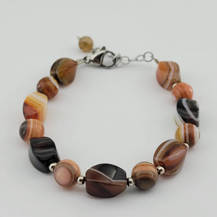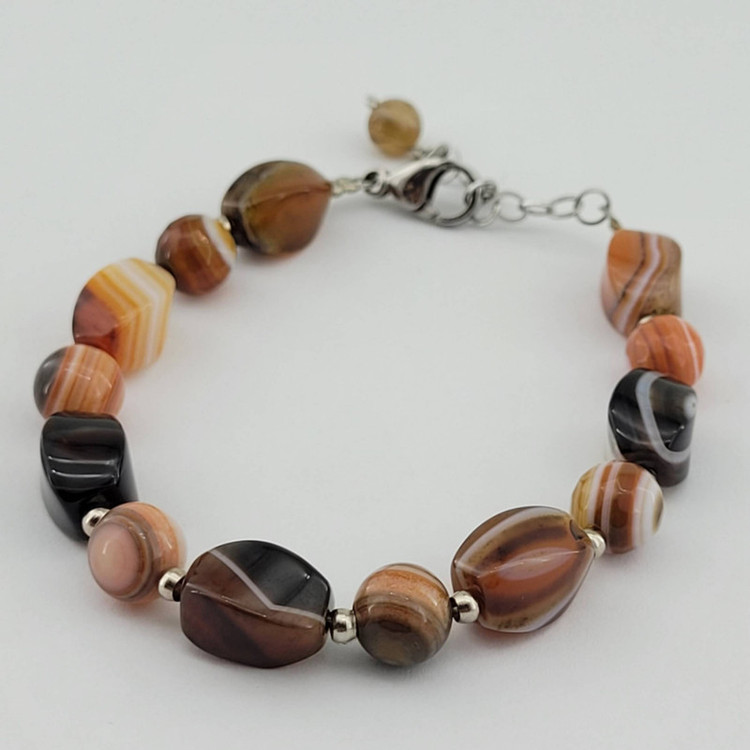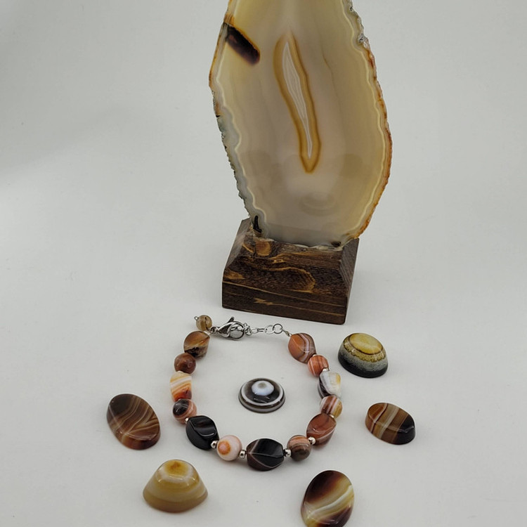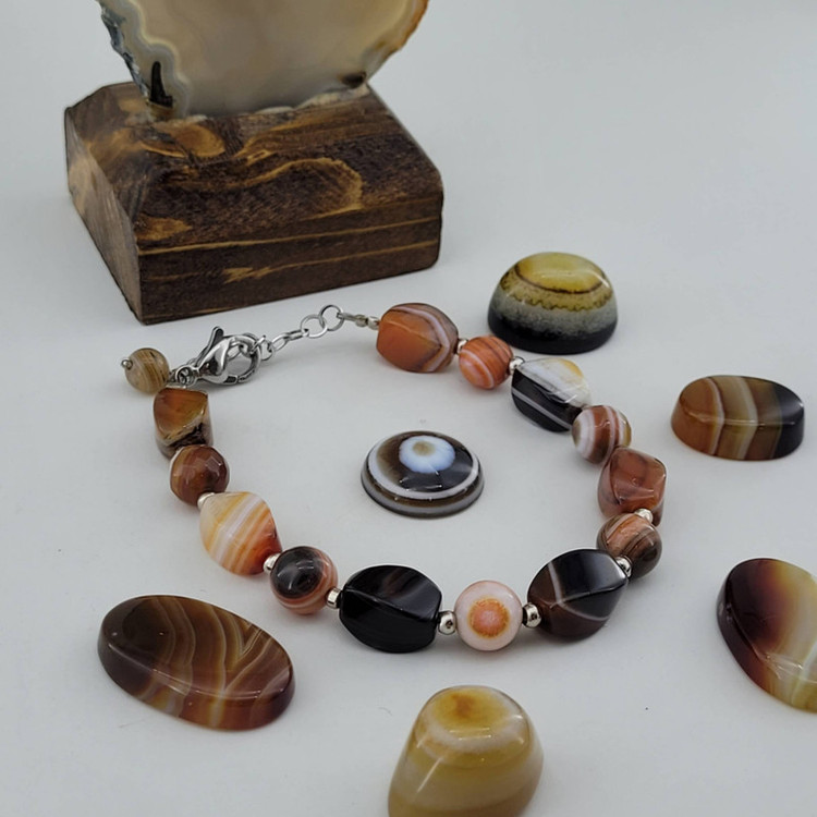 دستبند عقیق سلیمان برزیل در تراش های مختلف ( سنگ رنگ نشده) اتصالات استیل ضدحساسیت و رنگ ثابت ( متریال انحصاری) قابلیت تنظیم سایز مچ دست ( دارای زنجیر سایزر) هنر دست ( نمونه انحصاری) نمونه ی فوق با بهترین جعبه ارسال میشود)