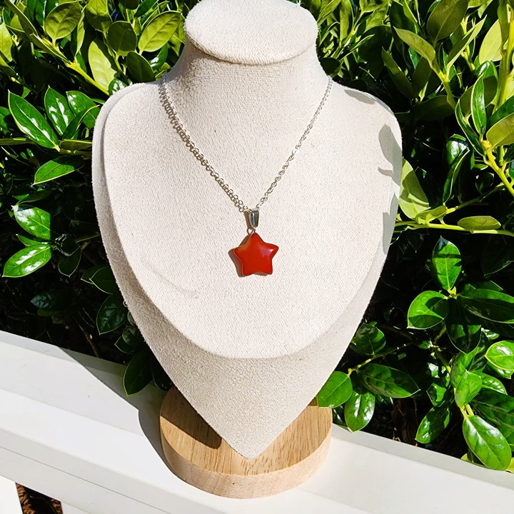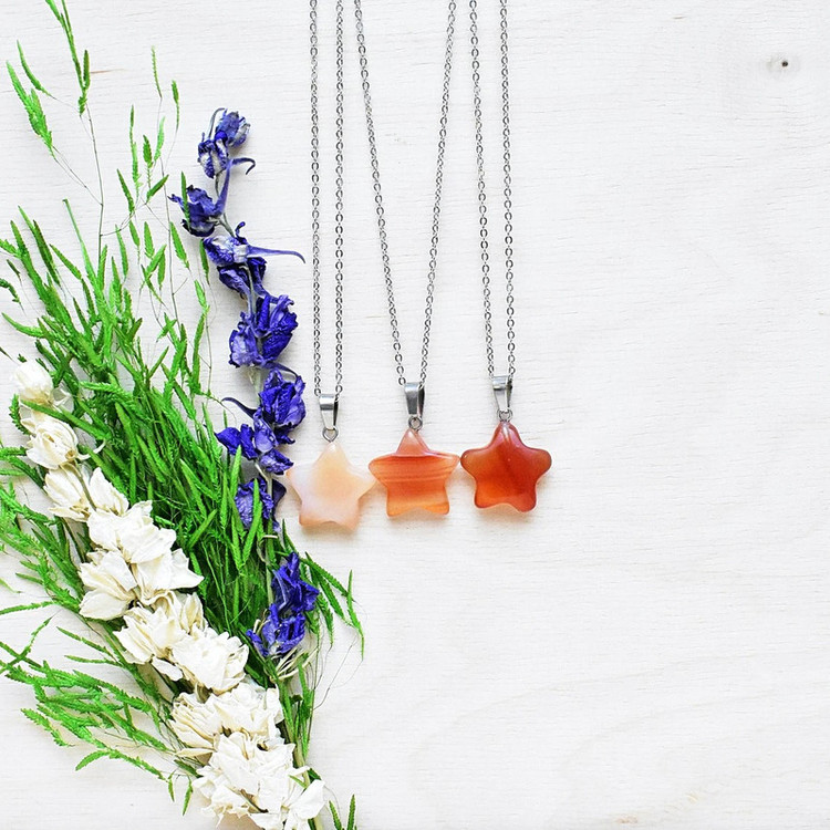 گردنبند مدل آویز ستاره ای سنگ عقیق طبیعی قیراط98