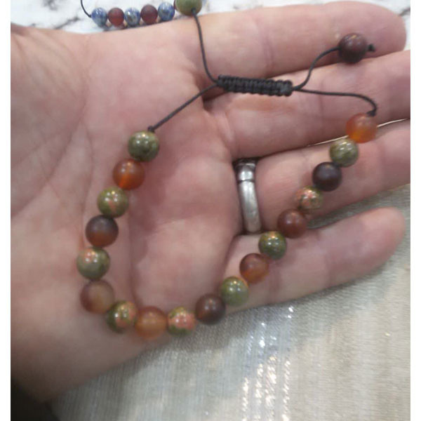دستبند مردانه سنگ اوناکیت و عقیق سلیمانی طبیعی