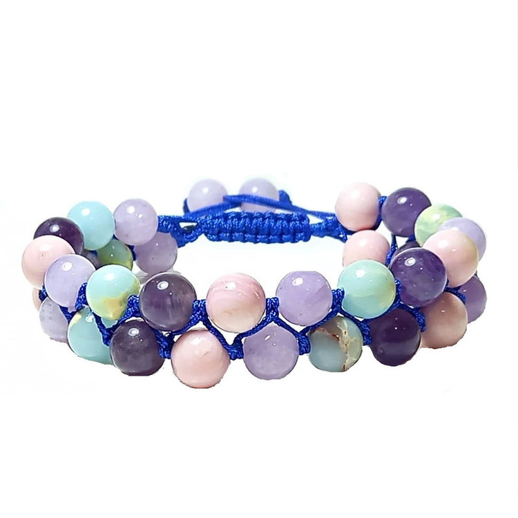 دستبند زنانه مدل دو رج بافت آمیتیست فیروزه افریقایی