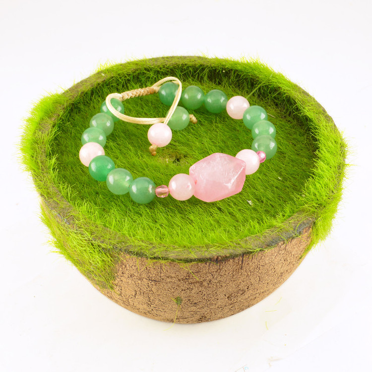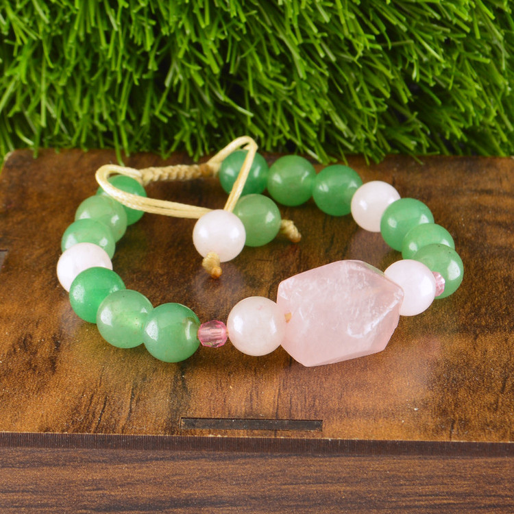 این دستبند شامل سنگهای طبیعی، آونتورین سبز و رزکوارتز است. سایز هر مهره سنگی، 8 میلیمتر میباشد. استایل این دستبند بافت است. این دستبند مناسب سایز مچ دست، 18.5 الی 19.5 سانت است. اگر سایز مچ دست شما کوچکتر از 18.5 سانت میباشد، این دستبند را از بخش دستبند های زنانه، سفارشدهی بفرمایید. لازم به ذکر است تمامی سنگ های این دستبند، اصل و طبیعی است.
