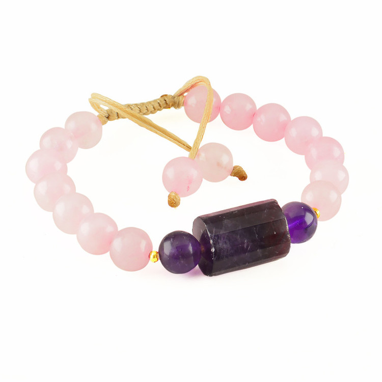 دستبند زنانه مدل رزکوارتز و آمتیست