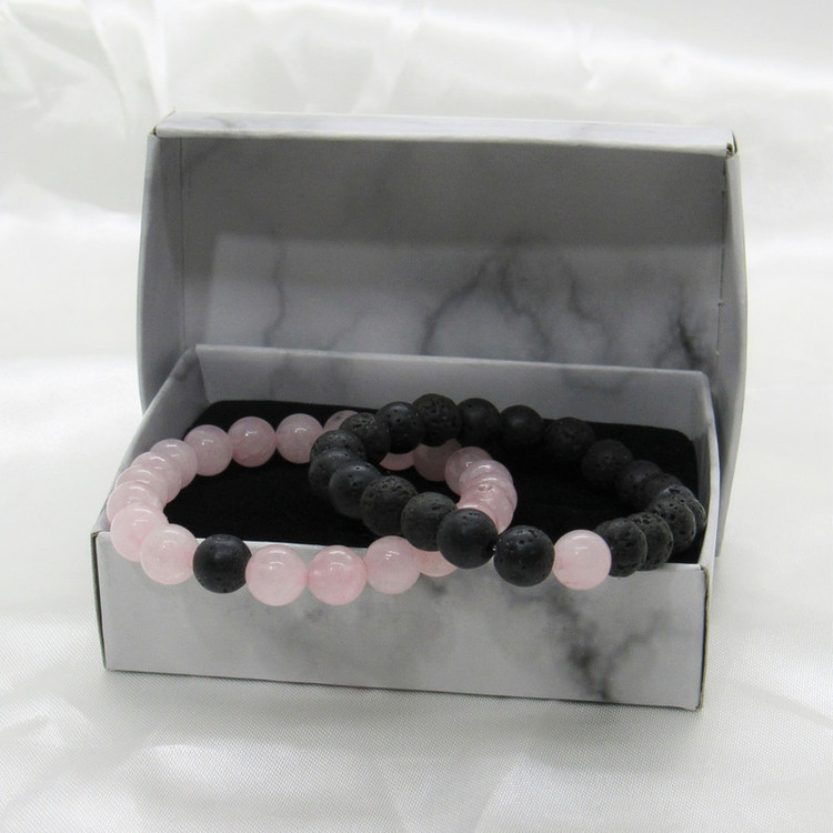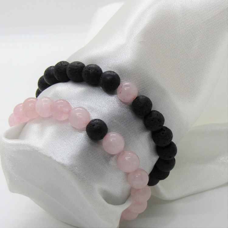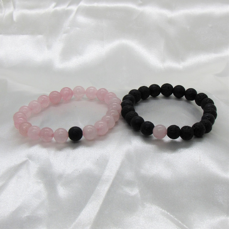 دستبندهای یک ردیفه زوج ، محصولاتی دستساز هستند که از سنگهای اصلی و طبیعی در ساخت آن استفاده شده است. دارای 2 نوع سنگ رز کوارتز ( سنگ عشق ) و لاوا میباشند. این دستبند کشی و مناسب برای استفاده خانمها و آقایان است.