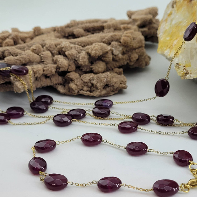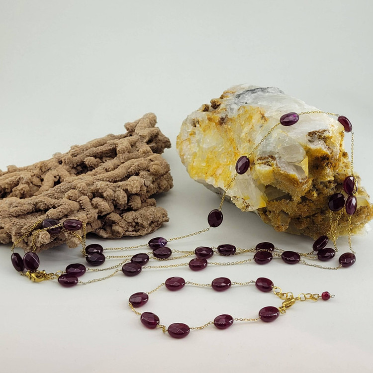 نیم ست زنانه سنگ عقیق یاقوتی جواهری طبیعی