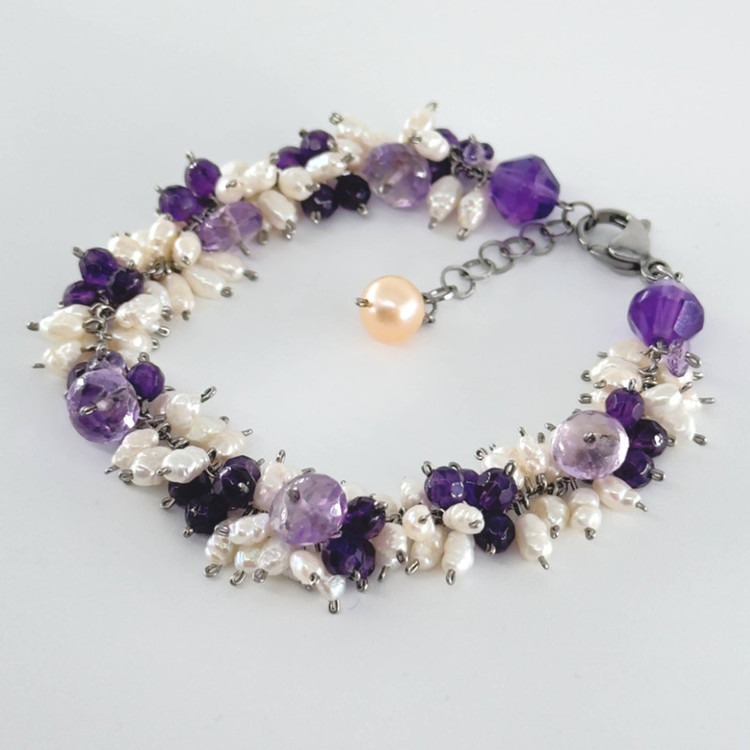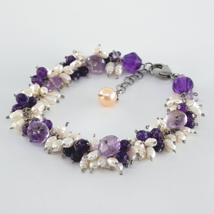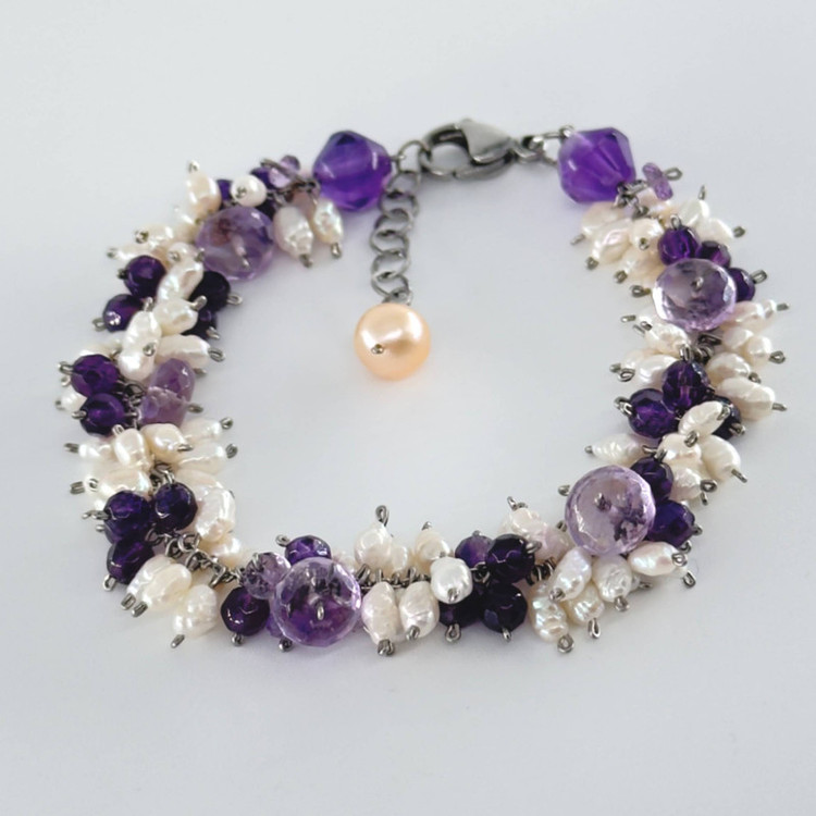 دستبند زنانه مدل سنگ مروارید و آمیتیست کد 1120