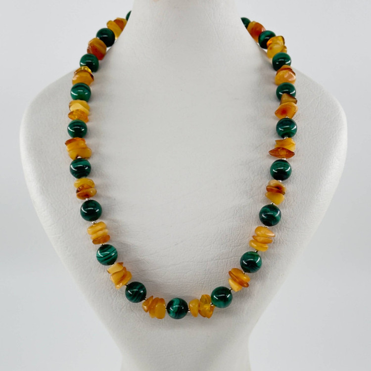 گردنبند زنانه مدل سنگ مالاکیت و کهربا کد 29