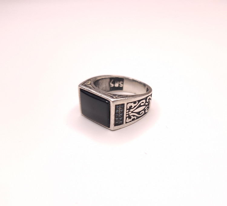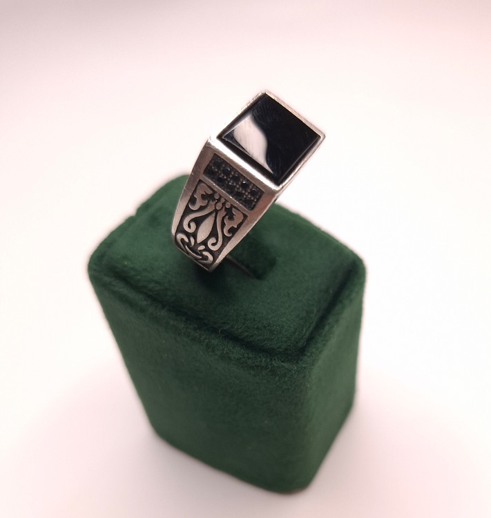 انگشتر نقره مردانه تمام نقره ۹۲۵ سیاه قلم نگین سنگ اونیکس