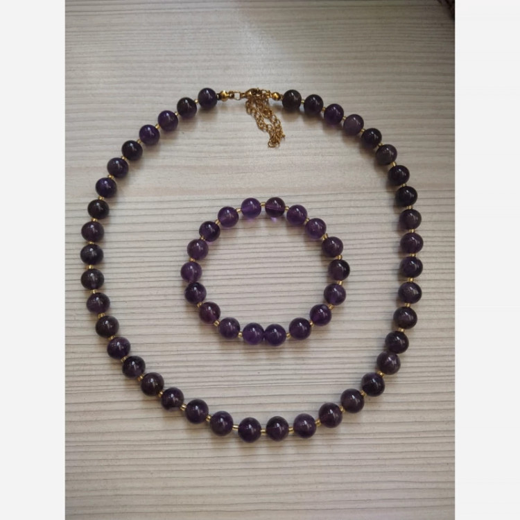 نیم ست گردنبند و دستبند آمیتیست طبیعی وارداتی از برزیل
