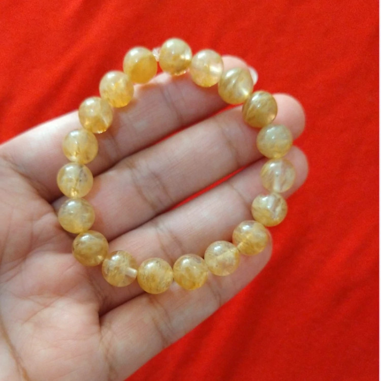 دستبند زنانه سنگ سیترین طبیعی قیراط98